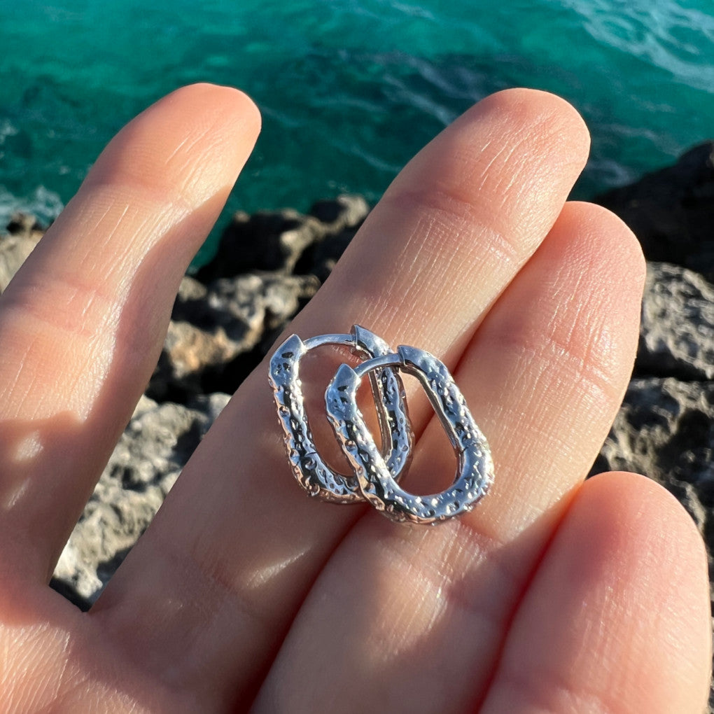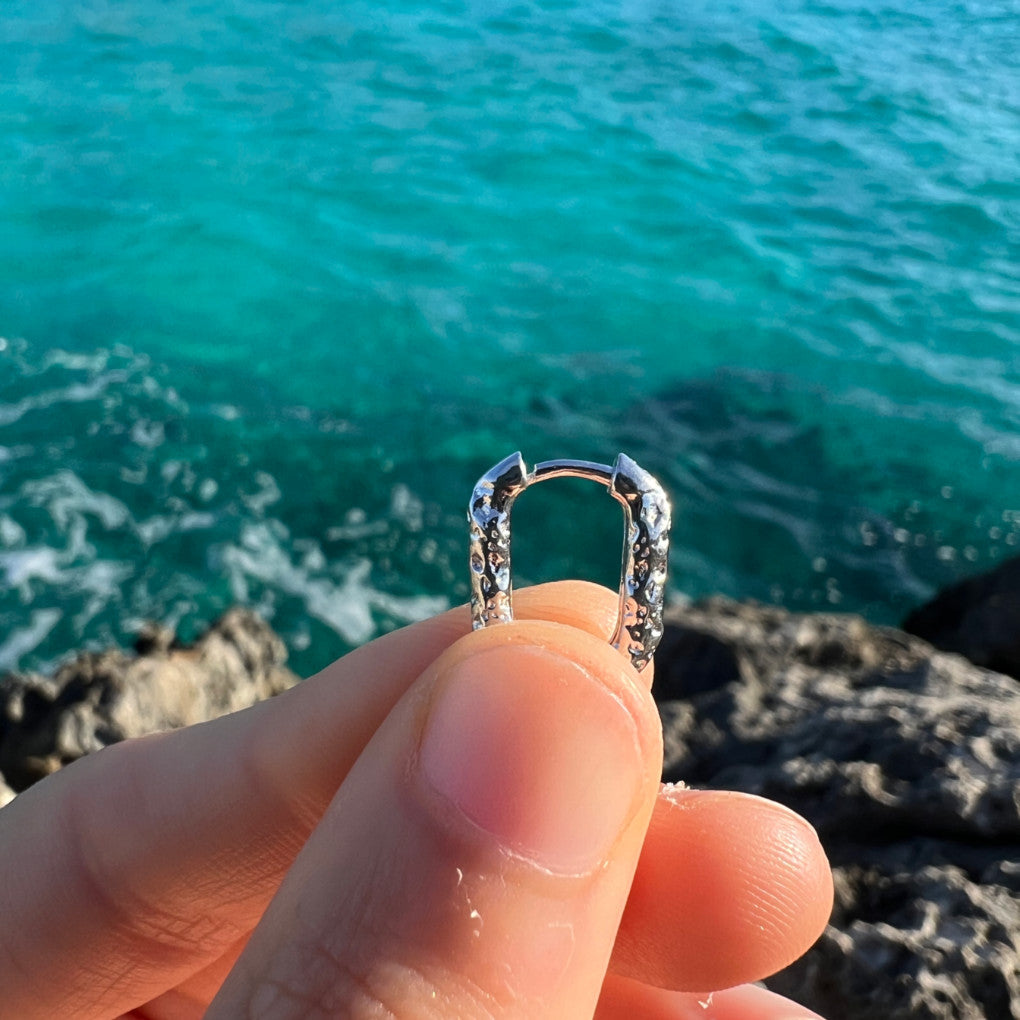 The basic item for any jewelry box, the SQUARED earrings are a hoop with a twist. Their 15x12mm size is ideal for everyday wear. They are very comfortable and lightweight.