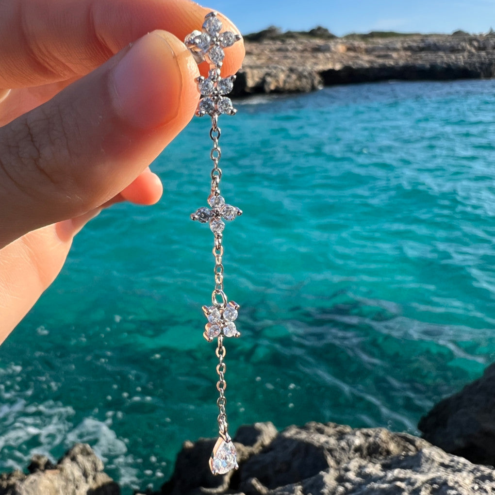 ¡Cómo nos gustan! Los pendientes MIA son una combinación única de distintas formas entrelazadas por una fina cadena que las une. Repleta de circonitas blanca, la combinación resulta en 6.5cm de largo, con una circonita en forma de gota como broche final. Lo último en la tendencia de pendientes largos.